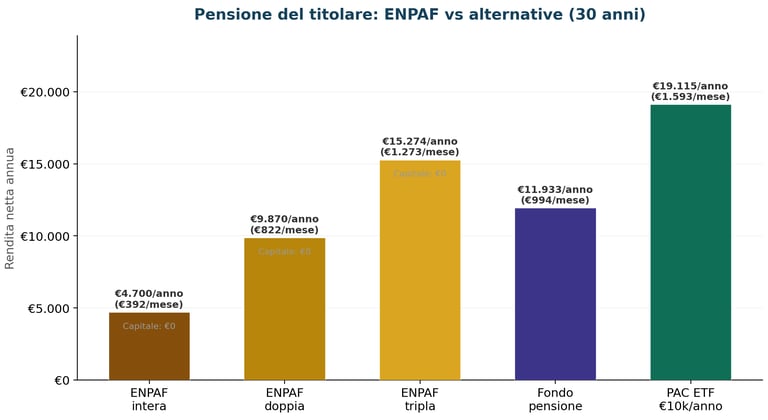 Sembra un miglioramento significativo. Ma il problema di fondo resta: il capitale non è tuo, non è ereditabile, non è flessibile. E se confronti il rendimento implicito dell’ENPAF con quello di un fondo pensione complementare o di un portafoglio ETF, il risultato è sempre a sfavore della cassa.